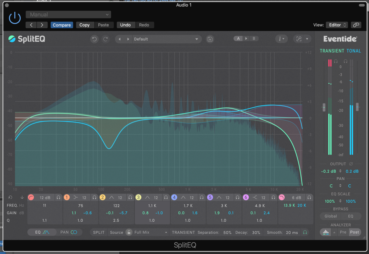 SplitEQ offers a new approach, featuring what Eventide calls a 'Structural Split engine' that divides incoming audio into separate transient and tonal streams feeding 8 bands. The result is a highly innovative EQ design for both corrective and creative EQ applications.