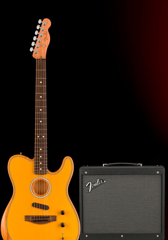 We've teamed up with Fender to give one lucky grand prize winner the chance to win a Fender Acoustasonic Player Telecaster and a Mustang GTX50 amp.