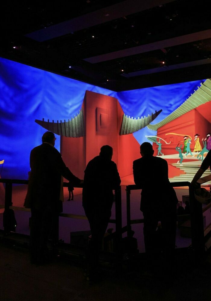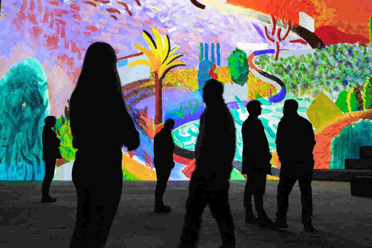 The effect is mesmeric. As Headliner enters the space, paintings from Hockney’s 1985 Paint The Stage project have become animated, gliding across the walls with something unique to see on each surface. It’s all understatedly accompanied by an original soundtrack from Nico Muhly that is frequently punctuated by the voice of Hockney himself, sharing the stories behind his work and offering unique insights into his artistry.