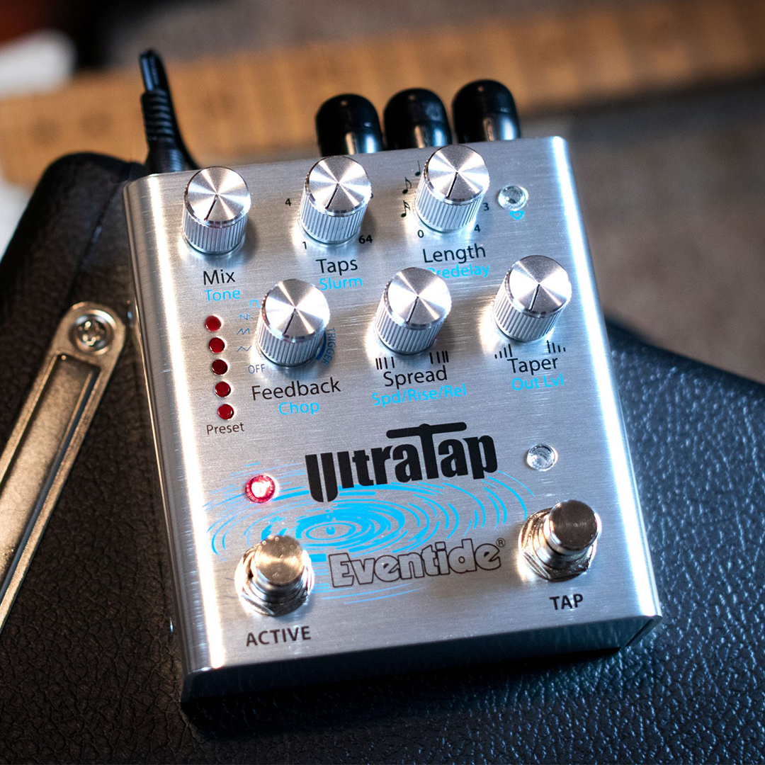 The UltraTap pedal (pictured below) is a different prospect, offering tape delays, reverb, modulation and more, so fittingly described as ‘a multiverse of tone.’ It has onboard LFOs and envelopes, and the lovingly titled ‘Slurm’ control for smearing and slurring taps together to create unique reverbs and choruses. On top of all this, you can control feedback, the spread/distance between taps, and ‘chop’ for expressive modultations.