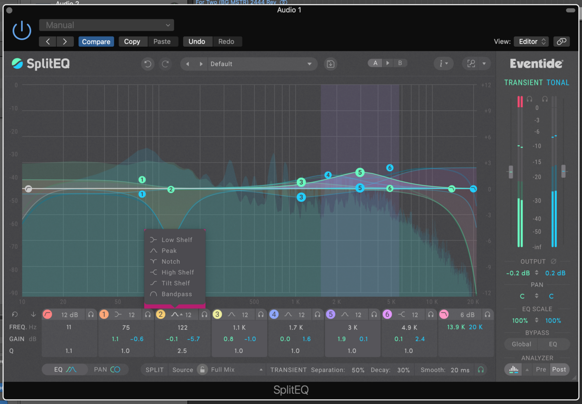 SplitEQ offers a new approach, featuring what Eventide calls a 'Structural Split engine' that divides incoming audio into separate transient and tonal streams feeding 8 bands. The result is a highly innovative EQ design for both corrective and creative EQ applications.