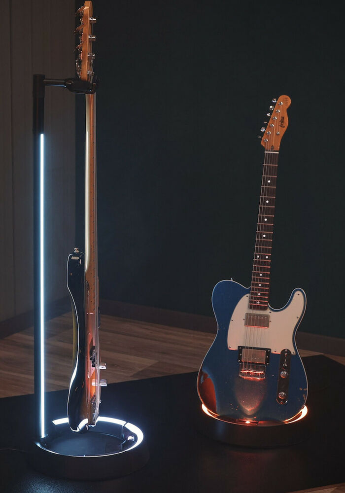 The variety of colours available can be cycled through by touching a hand to the unique responsive panels at the front of the Glow Stand’s base. Meanwhile, the Glow Stands also feature an adjustable front spotlight, which can be tilted to accentuate the details of the guitar.