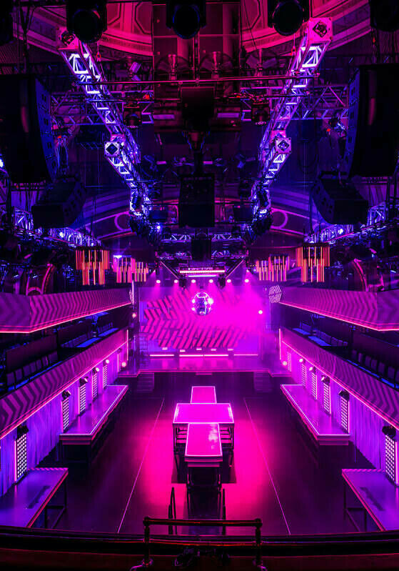 There, standing audience members can enjoy moving with the performers, acting as an integral part of the story. For those preferring to sit, there are multiple options: two 90-foot-long rows of elevated gallery seats flanking and overlooking the left and right sides of the dance floor; a large mezzanine; and an exclusive Club Lounge section located just under the front mezzanine.