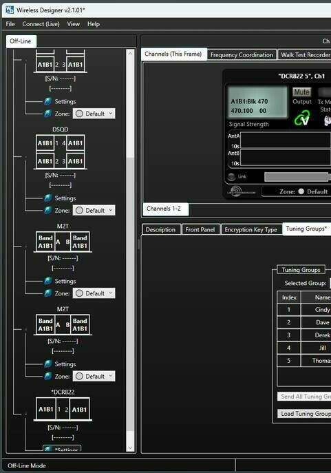 Recent updates to the Lectrosonics DCR822, DSR, and DSR4 portable digital multi-channel receivers allow users to create, edit, and share Tuning Groups with named entries. The new Wireless Designer V2.1 now offers the ability to create, import, edit, save and export these Tuning Groups, thus allowing users a much more rapid workflow when adding and updating these tuning groups to their Lectrosonics portable receiver ecosystem.