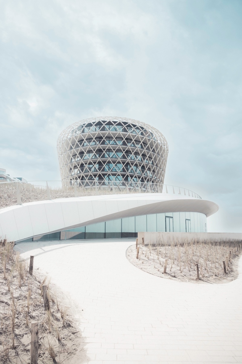 Essentially a multipurpose event venue, built and operated by Middelkerke’s municipality as part of its restoration programme for the area, it also hosts a restaurant, hotel and casino run by different operators. All are set within an artificial dune, each with spectacular views across the beach and sea.