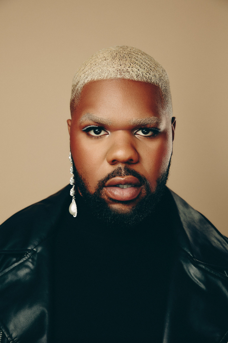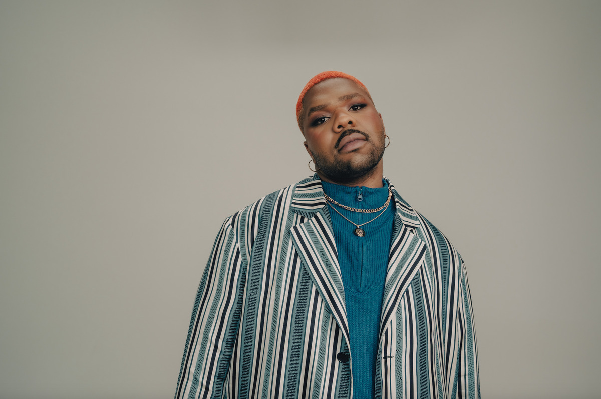 Used to seeing MNEK dressed mostly fabulously on Instagram (a flammable-looking blonde wig sometimes making a guest appearance), today he’s dressed down in a grey long-sleeved top and is sporting his natural short (although soon-to-be-swishable, braided) hair – no fluorescent dye in sight. If there are any flashes of him being extra today, it’s all in his words.