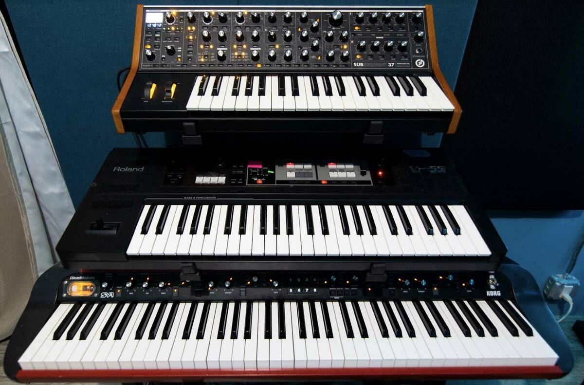 I have a studio where I have all my gear setup. I start by making dozens of instrumentals over months and I’ll take my favourite ones and start developing them. Then if a friend is coming into town, I’ll play them a bunch and we’ll start a session. Sometimes it’ll start with a phrase they have that will turn into a lyric and then it grows from there. Working with vocalists, the ideas tend to come quickly, and the best ideas usually happen pretty early on. Generally, you have to strike while the iron’s hot. Once the bones of the song are there, I usually try to mess around with the beat and instrumentation and add different things. If we need to do another session then it’s usually a matter of redoing backing vocals or doing little things to sweeten it. Those are the basics of how it works.