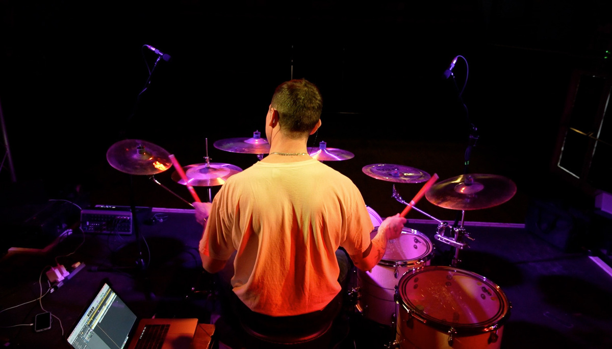 Rob now puts on his IEMs and starts playing along ‘properly’ to Enter Shikari’s most recent single, (pls) set me on fire, and it’s at this point that he starts really hitting the drums. I pull back the gain a little, and when I’m happy again, I hit record. We do five takes, and I invite Rolfe to come and have a listen.