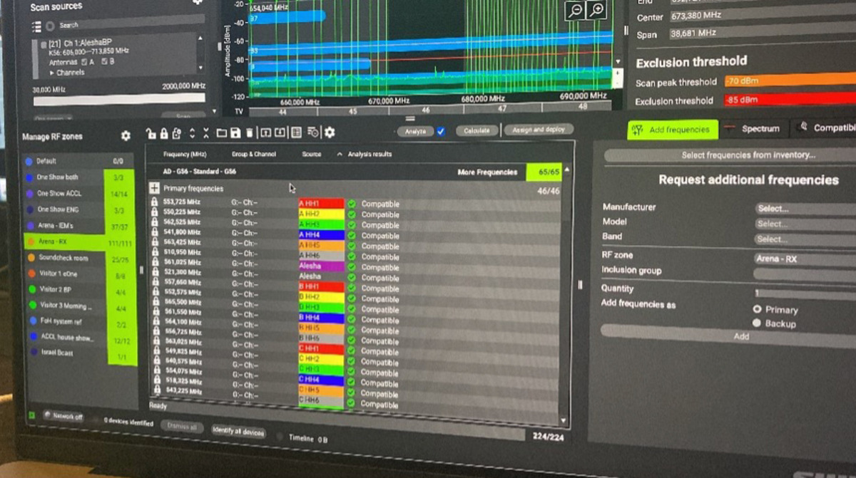 Tom Brown,project manager at Britannia Row, together with his team and Robert Edwards, head of sound at ESC 2023, specified an extensive system of Shure Axient Digital, PSM 1000 in-ear monitoring, AD600 Axient Digital Spectrum Manager, ShowLink, Wireless Workbench Software and Wavetool Software to provide the robust and solid solution required.