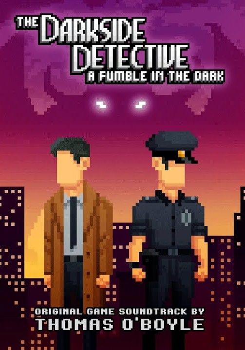 The soundtrack to The Darkside Detective: A Fumble in the Dark is composed by Thomas O’Boyle and comprises 33 tracks of music inspired by John Carpenter films from the ’80s, mystery television series Twin Peaks, wrestling themes, power ballads, horror elements, and the composer’s trip to Ireland.