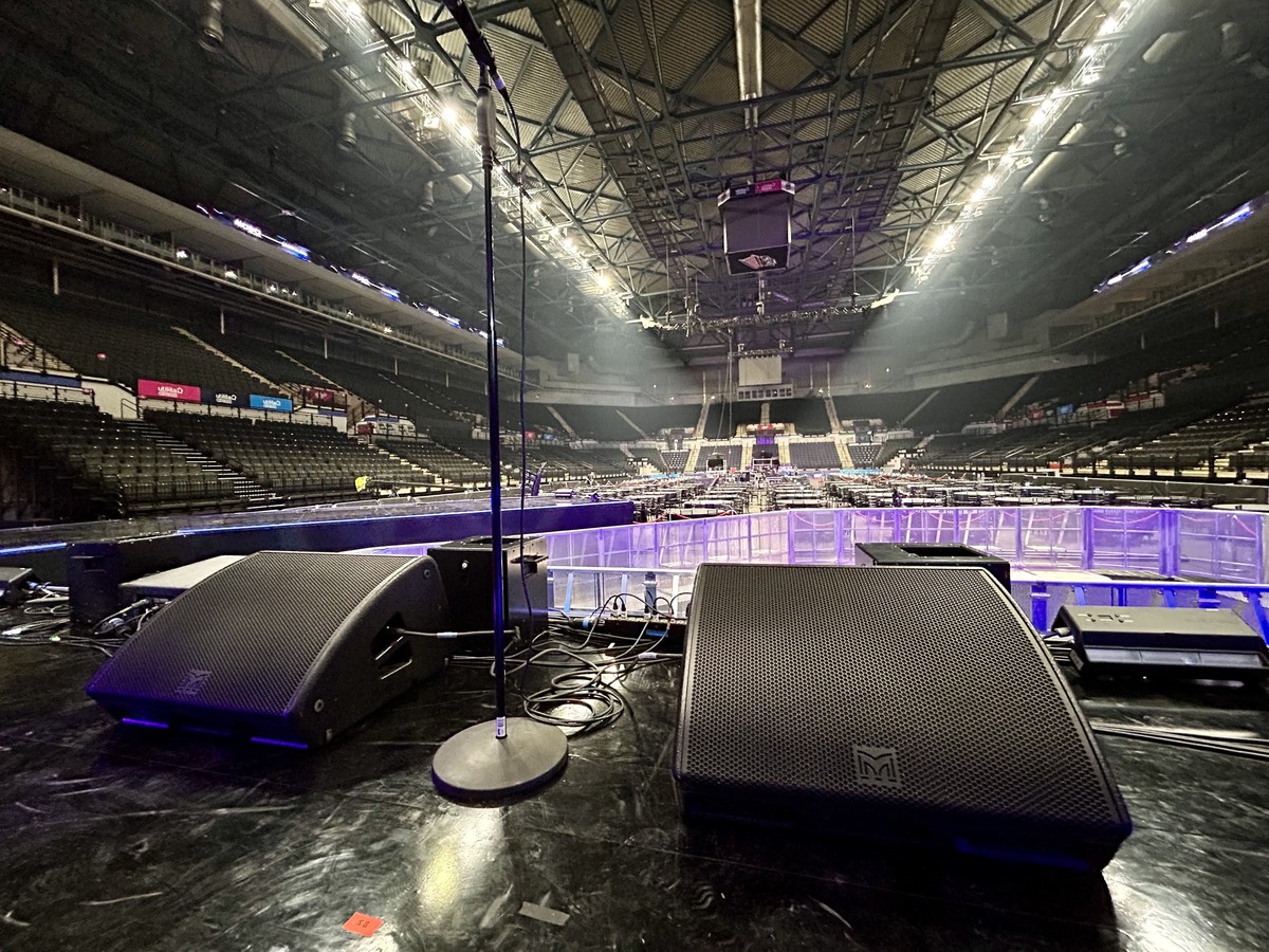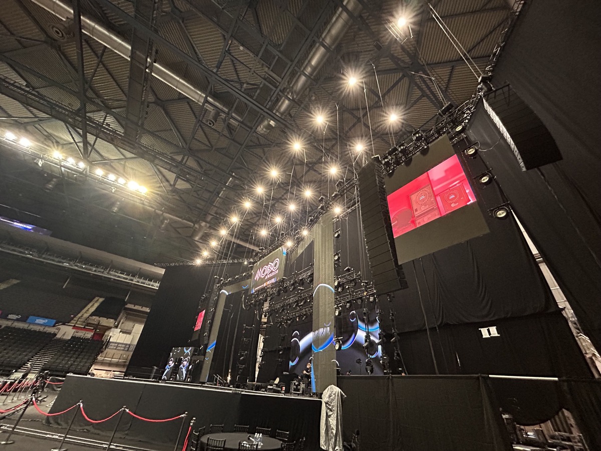 They had to overcome the challenges of providing balanced sound reinforcement for the live audience inside the 12,500-cap arena, while preserving the integrity of the set and striking a balance between the presenters’ mics and the live showcases, in a fast-paced show.