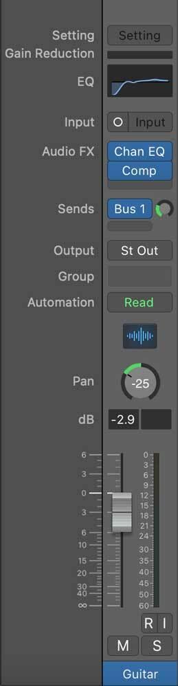 Only the EQ, reverb and compression are applied as plugins on individual tracks, groups, or the master bus. Levels and panning are applied using the mixer in your DAW.
